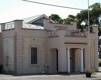 Lock is a town in the centre of Eyre Peninsula in South Australia. It is central Eyre Peninsula's main grain storage hub, as it is surrounded by a predominantly farming community, with emphasis on cereal crop production. The town has a hotel, caravan park, motel, supermarket, post office, police station, library, sporting complex, golf and bowling clubs and area school. At the 2006 census, Lock had a population of 290.[2]