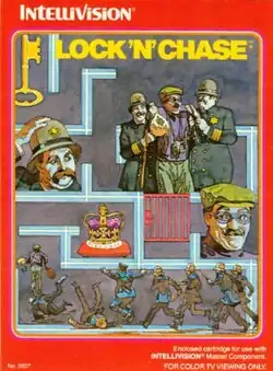 Lock 'n' Chase (ロック・ン・チェイス) is a maze chase video game developed by Data East and released in arcades in Japan in 1981. It was licensed to Taito for distribution in North America. It has similarities to Pac-Man, including a goal of collecting dots, with the addition of doors that periodically block pathways. Home versions for the Intellivision and Atari 2600 were published by Mattel in 1982,[2][6][7] and an Apple II version was released in January 1983.