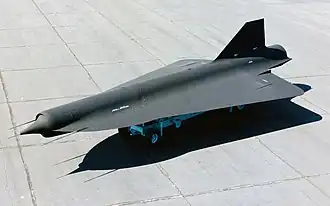 In the 1960s, Lockheed's secret Skunk Works developed the Mach 3 A-12 reconnaissance aircraft for the Central Intelligence Agency (CIA). After the shooting down of the U-2 piloted by Gary Powers in 1960, several different concepts were proposed as alternatives. Kelly Johnson, the leader of Skunk Works, developed the concept of a long-range drone that used much of the A-12's technology. In October 1962, the CIA and the United States Air Force (USAF) instructed Lockheed to study a high-speed, high-altitude drone concept. Johnson specified speeds of Mach 3.3–3.5, an operational altitude of 87,000–95,000 feet (27,000–29,000 m), and a range of 3,000 nautical miles (3,500 mi; 5,600 km). It was intended to make a one-way trip, eject its camera payload at the end of the mission for recovery, then self-destruct.[2] It had a double-delta wing similar to the A-12's wing design. The Q-12 was to be air-launched from the back of an A-12, and used key technology from the A-12 project, including titanium construction and radar cross-section reduction design features.[3]