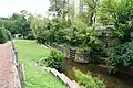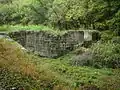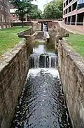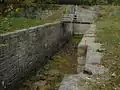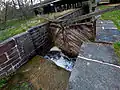 Lock 27 is a curious combination of the two specifications, having the culverts inside the masonry, but the upper gate below the breast wall. This is because of multiple contractors working on the lock after a lapse of time.[27]