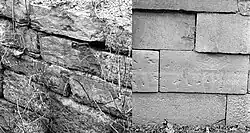 There were three different periods (or kinds) of iron cramps (like staples) to hold the lock stones together. First is 1⁄2 inch x 1+1⁄2 inches x 13 inches long, later 1⁄2 inch x 2 inches x 13–14 inches long, and later, 1 inch round iron, and 1⁄2 inch into the stone.[31]