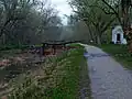 The Shepherdstown river lock (section 133) was served by a dam for Botler's mill on the Virginia Side. An 1889 flood destroyed the dam and the slackwater that necessitated the lock. It was later filled in and used for the towpath.[12]