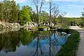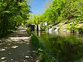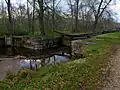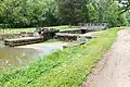 The Goose Creek locks were 0.2 miles below Edwards Ferry (Lock 25), in section 51 used for traffic coming from Goose Creek on the Virginia shore.[7] It allowed boats from the Goose Creek and Little River Navigation Company to enter. Only one Goose Creek boat was documented to enter the C&O canal, and there is no documentation of a C&O boat entering Goose Creek. The lock was eventually converted into a waste weir.[9] The Goose Creek lock is a staircase lock or combine lock:[10] two locks with no intervening pound or basin, the upper gate of the lower lock being the same gate as the lower gate of the second lock. It was perhaps the only such lock on the C&O Canal.