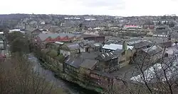 ![]() View of Lockwood, with the viaduct top left and the River Holme below. | |