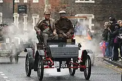 During the Boer War, Locomobile did establish a new mark of sorts, becoming the first automobile to be used in war; it was a generator and searchlight tractor used to dismantle the Klein Nek minefield.[5] It also served as a catering vehicle, with the useful ability (in British eyes, at least) of being able to brew a cup of tea by tapping the boiler.[3]: 1208