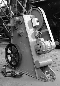 These could be broken down diesel or electric locomotives, but also 'cold' steam locomotives that have been stabled or stored in a locomotive shed. It was particularly important in the case of the latter category because the firing up of a steam locomotive from cold took several hours. As a result, in Germany, locomotive winches could be found in almost all steam locomotive sheds (Bahnbetriebswerk). They were usually electrically operated. Using pulleys, they could be used to pull locomotives on tracks other than the one on which they were installed.[1]