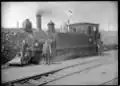The first steam engines built in New Zealand were produced in 1872. Fraser and Tinne built an 0-4-0 in Auckland in 1872, but it was based on a Hornsby traction engine.[8] Similarly, a steam crane was converted during construction of the Port Chalmers railway,[9] though it could only haul about 10 tons.[10] The first locomotive entirely built in the country was a 10 hp (7.5 kW) engine for the Foxton Tramway contractor, Ashworth Crawshaw,[11] by R. S. Sparrow & Co in Dunedin,[12] also in 1872.[13] It was named Palmerston.[14] Horses had replaced Palmerston by 1874,[15] but, in 1875, after iron had replaced wooden rails, the same branch had an A class steam locomotive built in Wellington by E.W. Mills' Lion Foundry.[16]