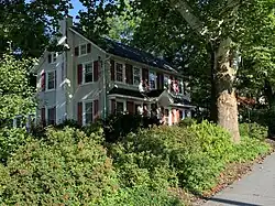 The oldest home still standing is west of the crossroads, built in 1750.[24] The home at the northeast corner of Locust Valley and Gun Club road was built in 1820.[25] Built in 1850,[26] the brick home across from the schoolhouse is built in the more traditional Federal style.