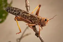 The brown locust (Locustana pardalina)[1] is a medium-sized small locust species in the monotypic genus Locustana.[2][3] It is found in Southern Africa and shows classic gregarious behaviour with phase polymorphism on crowding.[4]