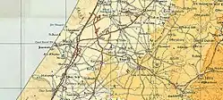 After his assault on the British garrison along the canal in January–February 1915, Jamal Pasha enlisted the help of the German engineer Heinrich August Meissner, who also planned the Hejaz Railway, to help him find a more efficient method of logistics. Meissner started constructing a railway to the south of the Palestine region, with the Wadi Surar station of the Jaffa–Jerusalem railway, some 15 km south of Lod railway station, serving as the starting point. At Al-Tina, the railway split into two branches: one to Beit Hanoun via Majdal, and the other to Beersheba. The two lines were collectively called the 'Egyptian Branch'.[1] The Lydda–Wadi Surar section, previously of 1,000 mm (3 ft 3+3⁄8 in) metre gauge narrow gauge, was converted to the Hejaz railway width of 1,050 mm (3 ft 5+11⁄32 in) narrow gauge standard, allowing rail traffic from Hejaz railway via the Eastern railway to continue further south from Lydda (Lod).