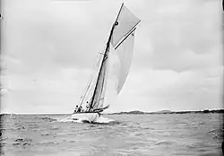 Thelma was the Logan Brothers’ first really large yacht, was built for marine merchants William and Alfred Jagger. Designed by Arch Logan, then only 32, she was launched from the Logans’ yard on 30 October 1897.[5] Thelma immediately became the scratch boat on the Waitemata, eclipsing the two former heavyweights Viking and the Sydney cutter/yawl Volunteer.