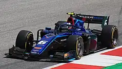 After receiving the backing of Formula One team Williams, Sargeant made his Formula 2 debut in the penultimate round of the 2021 season with HWA Racelab.[26] He finished the first race in 16th, retired in the second sprint due to a mechanical problem, and ended the aborted feature race in 14th position.