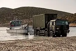 Italian Army - Logistic Regiment "Pozzuolo del Friuli" ACTL 8x8 truck disembarking from an Italian Navy LCM62-class landing craft during exercise Mare Aperto 24/1 in Capo Teulada