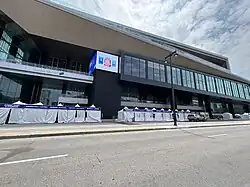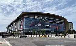 ![]() Exterior of Fiserv Forum, decorated in preparation for the convention | |