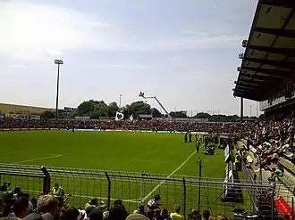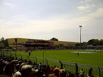 In the summer of 2000, a floodlight was erected, in line with the regulations of the two-tier Regionalliga which the club had newly reached. This met modern TV broadcasting standards and was also compulsory in the 3. Liga. The stadium had previously been floodlit between 1992 and 1995 but this was taken down during the construction of the new main stand.[10]