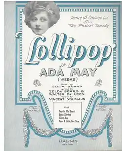 Lollipop is a musical comedy in three acts with book by Zelda Sears, lyrics by Sears and Walter De Leon, and music by Vincent Youmans. The show was produced by Henry W. Savage at the Knickerbocker Theatre, and opened January 21, 1924.[1]