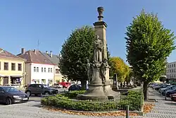 The historic town centre is formed by Husovo Square. It main landmark is the town hall from 1864, after the previous town hall burned down. It has a neo-Gothic façade.[11] Town Museum and Gallery was founded in 1891 and since 1945 is located in the Hrubý House, the only Neoclassical building in the town built in the 1820s.[12]