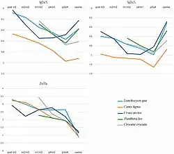 The dorsoventral mandibular force profiles (Zx/L) of Lonchocyon is similar to that of canids and amphicyonids, with Zx/L values similar to lions and Ysengrinia tolosana, and higher than that of most other amphicyonids. The values at the canine are also similar to those of lions, and higher than of other compared taxa except for Y. tolosana and brown bears. This suggests that it was capable of delivering powerful canine bites to subdue large preys like big cats do, instead of delivering rapid and shallow bites as pack-hunting canids. The large value indicates that it was capable of withstanding high dorsoventral stresses. Its labiolingual mandibular force profiles (Zy/L), which point toward high labiolingual and torsional stresses, also showcase similarities to that of canids and amphicyonids, though they are lower than the Zx/L values at the same location, except for the canine. The values are very high, generally similar to those of lions, spotted hyaenas and Y. tolosana, higher than that of most amphicyonids, except for Magericyon and Ammitocyon. At the canine, the value even surpasses the lion, indicating that it was capable of withstanding huge labiolingual and torsional stresses while restraining prey with its powerful canine bites. Both the Zx/L and Zy/L values rise gradually along the horizontal ramus posterior to the canine. The relative mandibular force (Zx/Zy) of Lonchocyon almost plateaus from the third premolar to the second molar, corresponding to its sectorial carnassial tooth and reduced premolars. This is a marked difference to that of other caniformes, and indicatzes they were mainly used to slice meat, and did not need to withstand great buccolingual or torsional stresses. The posterior molars, however, seem to have had the ability to crack harder objects. Overall, Lonchocyon possessed a robust mandibular symphysis, allowing it to deliver canine bites similar to those of lions to subdue prey as large or larger than itself. It has furthermore been suggested that it was a solitary hunter, unlike modern canids.[1]