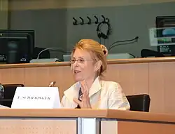 ![]() Londa Schiebinger presenting the Gendered Innovations Project at the European Parliament. | |