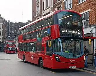London Buses route 2 is a Transport for London contracted bus route in London, England. Running between Norwood bus garage and Marylebone station, it is operated by Arriva London.