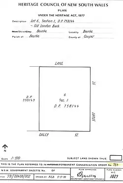 The configuration of the site of the Old London Bank of Australia demonstrates the first subdivision of allotments for the township of Bourke in 1862. It is evidence of a period of economic expansion in Bourke in the nineteenth century that encouraged banks to establish larger more permanent officers in the Darling River Town thus facilitation the settlement and development of the then remote areas of western NSW.[1]