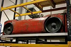 With initial funding of £25,000 (equivalent to £3.2 million in 2023),[4] the company tested the technology and constructed a pilot route at the Soho Foundry of Boulton and Watt in Birmingham.[5] The first full-scale trial was at Battersea during the summer of 1861.[6] A single tube was installed, 452 yards long, with curves of up to 300 feet (91 m) radius and gradients of up to 1 in 22. 2 ft (610 mm) narrow gauge track was cast inside the tube. Wheeled capsules were fitted with vulcanised rubber flaps to make an air seal. Power was provided by a 30 horse-power steam engine with a 21 feet (6.4 m) diameter Waddle fan. Single capsules weighed up to 3 tonnes, and achieved speeds up to 40 mph (60 km/h).