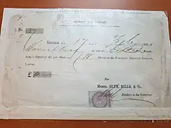 Another line from Holborn to Gresham Street via the General Post Office on St Martin's le Grand was authorised by the Pneumatic Despatch Company's Act 1864[12] and was under construction in 1865. By the time of the 1866 financial crisis caused by the Overend, Gurney and Company collapse, a 3⁄8-mile (0.60 km) tube from Holborn to Hatton Garden had been constructed.[8] Total expenditure so far was £150,000 (£18 million in 2023).[4]