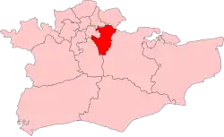 United Kingdom Parliamentary constituencies were redrawn in 1983 and the European constituencies were altered to reflect this. The new seat comprised the following Westminster constituencies: Beckenham, Bexleyheath, Chislehurst, Eltham, Erith and Crayford, Greenwich, Old Bexley and Sidcup, Orpington, Ravensbourne and Woolwich.[2] These boundaries were used in 1984 and 1989.[3] Greenwich was removed for the 1994 European Parliament election.[4]