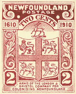 ![]() Newfoundland postage stamp featuring the arms of the London and Bristol Company | |
