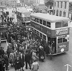 On 1 September 1939, two days before the outbreak of war, the evacuation programme was re-started in earnest.[23] Most of the evacuees left London by rail, although some along the riverside, particularly in Dagenham, left by boat, and more affluent families escorted their children in cars.[24]