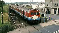 The L&CR struggled with financial difficulties and from 1861 leased their line to the growing Belfast & Northern Counties Railway (BNCR).[5] This saw the closure of Coleraine Waterside Station with services from Derry running into the BNCR station in Coleraine on the other side of the river. Eventually the BNCR agreed to buyout the L&CR completely, with the Londonderry and Coleraine Railway (Sale) Act 1871 (34 & 35 Vict. c. clxviii) ending the line's existence as an independent company.[6][5] This was not the end of the railway as it would continue to form part of the mainline between Belfast and Londonderry for the BNCR and its successors. The BNCR invested in the line and constructed a new terminus in Londonderry in 1874, which despite being abandoned in favour of a smaller terminus between 1980 and 2019 is still in use today.