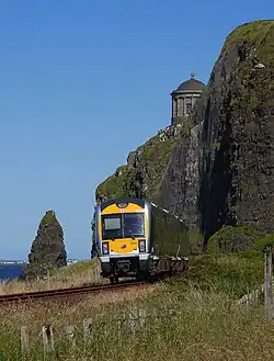 The line is regarded for its scenic views of the coastal views from the train taking in Downhill beach and cliffs, Binevenagh and the Foyle estuary. It was famously described by Michael Palin as "one of the most beautiful rail journeys in the world"[16] and in 2016 was listed 7th in Country Living's "10 most breathtaking railway journeys across the UK"[17] ahead of the luxury chartered British Pullman.