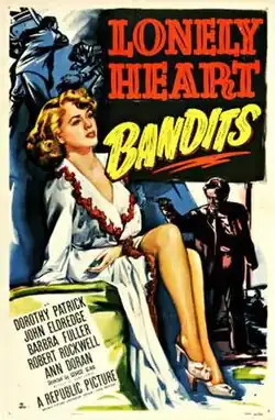 Lonely Heart Bandits is a 1950 American drama film directed by George Blair and written by Gene Lewis. The film stars Dorothy Patrick, John Eldredge, Barbra Fuller, Robert Rockwell, Ann Doran and Richard Travis. It was released on August 29, 1950 by Republic Pictures.[1][2][3]