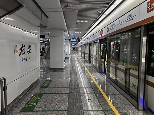 Long'an (Chinese: 龙安) is a metro station of Line 9 of the Hangzhou Metro in China. It is located in Linping District of Hangzhou.[1] The station was opened on 17 September 2021.[2]