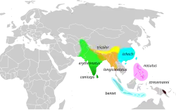 - L. s. bentet Horsfield, 1821 – Malay Peninsula, Greater and Lesser Sundas and Borneo