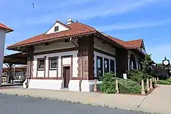 Long Beach station was originally built in 1880 by the New York and Long Beach Railroad, however it was much closer to the Atlantic Ocean than the present station. The site was surrounded by Broadway, Penn Street, Edwards Boulevard and Riverside Boulevard, and served the grand Long Beach Hotel,[6] which Austin Corbin claimed was the world's largest hotel.[7] It also included a clock tower on the station house, a water tower, and a gazebo. Additionally, it had a connection to the Long Beach Marine Railway, which served Lido Beach and Point Lookout. The hotel burned down on July 27, 1907 in what was officially ruled as an electrical fire.[8]