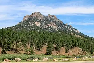 Long Scraggy Peak is a mountain in Jefferson County, Colorado. A prominent peak, it is characterized by its elongated, craggy ridge, for which it is named. The mountain is located within the Pike National Forest near the confluence of the North Fork South Platte River and the South Platte River.[3]