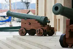 In historical navy usage, a long gun was the standard type of cannon mounted by a sailing vessel, called such to distinguish it from the much shorter carronades. In informal usage, the length was combined with the weight of the shot, yielding terms like "long 9s", referring to full-length cannons firing a 9-pound round shot.