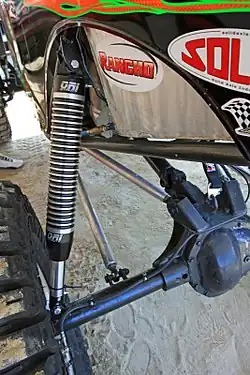 Long travel suspension is a type of vehicle suspension often used in off road racing. Vehicles such as dune buggies, baja racers, mountain bikes, adventure motorcycles, dirt bikes and rock crawlers use long travel suspension to dampen the effects of, rough, off-road driving conditions.[1] There is no definitive standard on what is considered long travel. Categories such as short travel, standard/stock travel, mid-travel and long travel have vague boundaries. Definitions vary depending on application and time period in history.