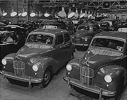 By 1908, 1,000 workers were at a factory, which covered 4 acres (1.6 ha); a night shift was introduced to help create adequate supply to meet the rising demand for products.[8] By September 1912, workshops covered more than 8 acres, output was running at 1,000 cars a year and employee numbers were 1,800. Austin built their own bodies and their coachbuilding department was one of the largest in the country. They built their own artillery wood wheels and made the hubs for wire-spoked and pressed-steel wheels.[9] In February 1914, the company was floated as a public company and £250,000 of new preference shares were issued to the public and listed on the stock exchanges.[13]