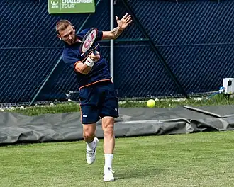 Dan Evans's (pictured in 2018) 2024 victory over Karen Khachanov 6–7(6–8), 7–6(7–2), 7–6(7–4), 4–6, 6–4, becoming the longest match in 5 hours 35 minutes.