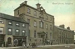 The courthouse, which was designed in the neoclassical style and built in ashlar stone, was completed in around 1795.[1] The design involved a symmetrical main frontage of five bays facing Main Street; there was a short flight of steps leading up to a doorway with Doric order columns supporting an entablature and a pediment.[1] There was a Venetian window on the first floor, a pair of mullioned windows on the second floor and a pediment containing an oculus above.[1]