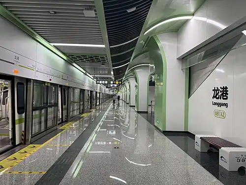 Longgang station is a metro station of Line 8 and Line 19. It is located at Chengdu, Sichuan, China. The part of Line 19 opened at 28 November 2023,[1] the part of Line 8 opened at 19 December 2024.[2]