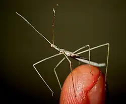 Lopodytes Rondani 1867[5] is a genus in the family Reduviidae, the assassin bugs. Members of the genus have been unofficially assigned the common name grass assassin bugs,[6] but generally this name remains meaningful only to naturalists, because these insects have been too well camouflaged to raise robust public awareness.