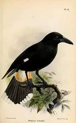 The Lord Howe currawong (Strepera graculina crissalis), Lord Howe Island currawong or Lord Howe pied currawong, is a large and mainly black passerine bird in the family Artamidae. It is endemic to Lord Howe Island in the Tasman Sea, part of New South Wales, Australia, and is a threatened subspecies of the pied currawong.