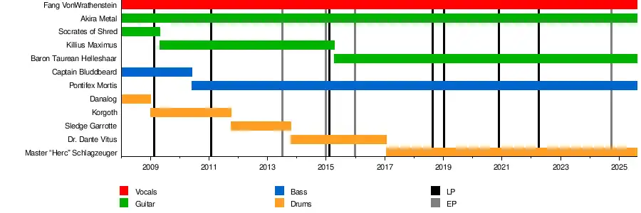 In October 2011, Korgoth left the band and was replaced by the new drummer Sledge Garrotte (Wade Schultz).