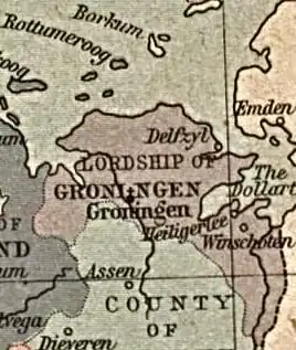 The Lordship of Groningen (Dutch: Heerlijkheid Groningen; West Frisian: Hearlikheid Grinslân) was a lordship under the rule of the House of Habsburg between 1536 and 1594, which is the present-day province of Groningen.[1]