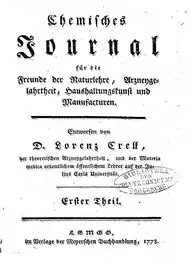- ^ Toftlund, Hans (1978). "Lorenz Crell und das erste chemische Periodicum 1778". Chemie in unserer Zeit (in German). 12 (6): 199–200. doi:10.1002/ciuz.19780120605.