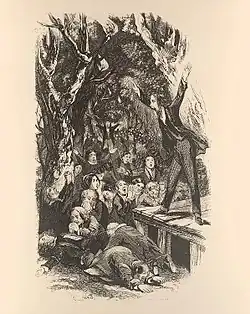 Dow made three visits to Ireland and England, in 1799, 1805 and 1818, and by his eccentric manners and attractive eloquence drew after him immense crowds.[2] He took what he believed to be a divine call and crossed the Atlantic Ocean to preach as a missionary to the Catholics of Ireland, and thereafter was never connected officially with the ministry of the Methodist Church, though he remained essentially a Methodist in doctrine. He introduced camp meetings into England, and the controversy about them resulted in the organization of the Primitive Methodist Society.[3]