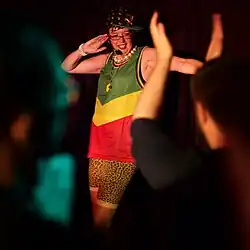 Polyester Fiesta! toured during 2015, been performed at Glasgay,[7] The South Bank Vintage Festival, Brighton Fringe,[8] Colchester Arts Centre [9] and Royal Vauxhall Tavern among others.